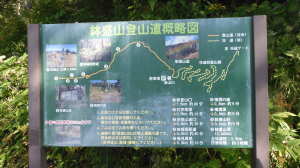 P(08:45) 1.0q(09:36) 展望所、1.5q(10:00) 2.3q(10:32) 権現の庭(10:59) 避難小屋、3.5q(11:02) 鉢盛山(11:11、2,446.5m) 電波塔(11:26) 11:29 山頂(11:31) 11:39 11:58 展望所(12:21) 0.4q(13:08) |