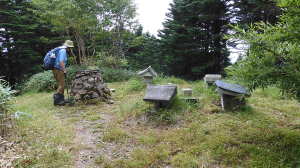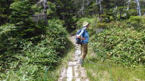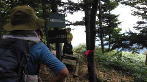 08/21(木) P(08:45)→1.0q(09:36)→1.4q(09:55)→展望所、1.5q(10:00)→2.0q(10:14)→2.3q(10:32)→権現の庭(10:59)→避難小屋、3.5q(11:02)→鉢盛山(11:11、2,446.5m)→電波塔(11:26)→山頂(11:31)→展望所(12:21)→0.5q(13:06)→0.4q(13:08)→P(13:18)