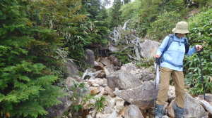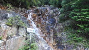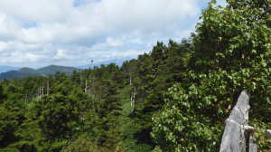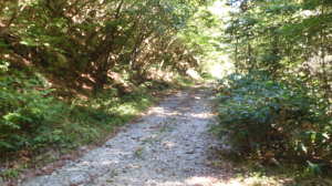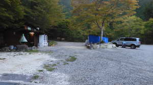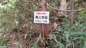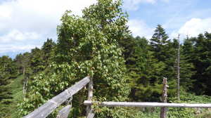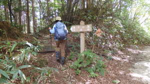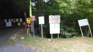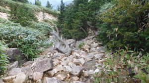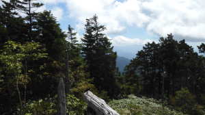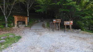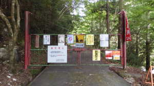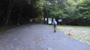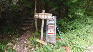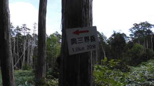 09/09(火) P(05:51)→竜神の滝入口(05:53)→ゲート(06:00)→忘麟の滝(06:10)→銅穴の滝(06:21)→林道入口(06:27)→上部林道出口(07:47)→上部林道入口(08:32)→ヒルメシ谷(09:52)→枯れ木のダオ(10:13)→天狗の庭(10:19)→1.0q(10:25)→0.5q(10:43)→夕森庭園(10:50)→鏡池(10:53)→奥三界山(10:58〜11:20、1,810.6m)→1.0q(11:49)→ヒルメシ谷(12:15〜12:25)→避難小屋(12:48)→上部林道入口(13:13)→上部林道出口(14:02〜14:10)→吊り橋(15:03)→林道入口(15:15)→銅穴の滝(15:19)→忘麟の滝(15:30)→ゲート(15:39)→P(15:50)