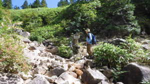 09/09(火) 晴れ時々曇り P(05:51)→竜神の滝入口(05:53)→ゲート(06:00)→忘麟の滝(06:10)→銅穴の滝(06:21)→林道入口(06:27)→上部林道出口(07:47)→上部林道入口(08:32)→ヒルメシ谷(09:52)→枯れ木のダオ(10:13)→天狗の庭(10:19)→1.0q(10:25)→0.5q(10:43)→夕森庭園(10:50)→鏡池(10:53)→奥三界山(10:58〜11:20、1,810.6m)→1.0q(11:49)→ヒルメシ谷(12:15〜12:25)→避難小屋(12:48)→上部林道入口(13:13)→上部林道出口(14:02〜14:10)→吊り橋(15:03)→林道入口(15:15)→銅穴の滝(15:19)→忘麟の滝(15:30)→ゲート(15:39)→P(15:50) |