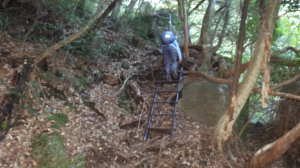 P(07:23) 林道入口(07:26、456m) 八方ケ岳登山口(07:33、487m) 梯子@(07:50) 岩下神社(08:03) 穴川分岐(08:27〜08:40、808m) 展望地(08:48) 梯子A(08:55) 雷の木(09:06) 班蛇分岐(09:18、1,030m) 八方ケ岳(09:31〜09:52、1,051.9m) 蟹足岳分岐(09:56) 前岳(10:08、1,025m) 10:41 蟹足岳(11:28) 梯子B(11:28) 蟹のハサミ岩(11:33、765m) 蟹足岳登山口(12:08、621m) 林道入口(12:55、456m) P(13:02) |