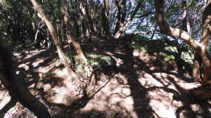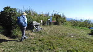 10/10(金) 晴れ P(07:23)→林道入口(07:26、456m)→八方ケ岳登山口(07:33、487m)→梯子@(07:50)→2.1q(07:57)→岩下神社(08:03)→炭釜(08:08)→穴川分岐(08:27〜08:40、808m)→展望地(08:48)→梯子A(08:55)→0.7q(09:06)→雷の木(09:06)→0.4q(09:18)→班蛇分岐(09:18、1,030m)→八方ケ岳(09:31〜09:52、1,051.9m)→蟹足岳分岐(09:56)→前岳(10:08、1,025m)→1.5q(10:19)→819P(11:21)→蟹足岳(11:28)→梯子B(11:28)→蟹のハサミ岩(11:33、765m)→蟹足岳登山口(12:08、621m)→八方ケ岳登山口(12:49、487m)→林道入口(12:55、456m)→P(13:02) |
