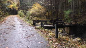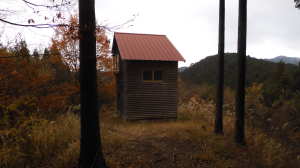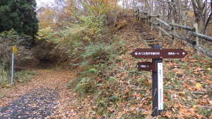 11/26(水) P(09:53)→登山口(09:56)→登尾ルート分岐(10:04)→連絡道分岐(10:21)→参籠所(10:27)→不動滝(10:28)→避難小屋(11:29)→大日如来(11:53)→400m・八丁平分岐(11:54)→三峰山(12:03、1,235.3m)→八丁平(12:08)→400m・八丁平分岐(12:17)→避難小屋(12:31〜12:45)→避難小屋2(三畝山林展望所、13:25)→連絡道分岐2(13:30)→避難小屋3、トイレ(13:31)→登尾ルート分岐(13:52)→登山口(14:00)→P(14:01)