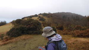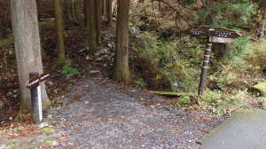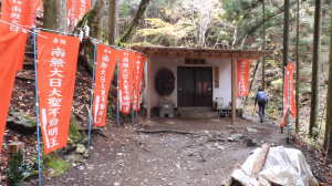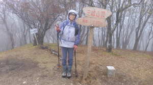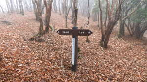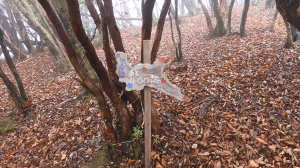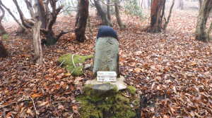 | 11/26(水) 曇り、処により強風 P(09:53)→登山口(09:56)→登尾ルート分岐(10:04)→連絡道分岐(10:21)→参籠所(10:27)→不動滝(10:28)→避難小屋(11:29)→大日如来(11:53)→400m・八丁平分岐(11:54)→三峰山(12:03、1,235.3m)→八丁平(12:08)→400m・八丁平分岐(12:17)→避難小屋(12:31〜12:45)→避難小屋2(三畝山林展望所、13:25)→連絡道分岐2(13:30)→避難小屋3、トイレ(13:31)→登尾ルート分岐(13:52)→登山口(14:00)→P(14:01) |