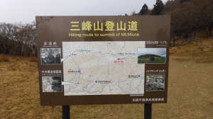 | P(09:53) 登尾ルート分岐(10:04) 連絡道分岐(10:21) 参籠所(10:27) 不動滝(10:28) 避難小屋(11:29) 大日如来(11:53) 400m・八丁平分岐(11:54) 三峰山(12:03、1,235.3m) 八丁平(12:08) 400m・八丁平分岐(12:17) 避難小屋(12:31〜12:45) 避難小屋2(三畝山林展望所、13:25) 連絡道分岐2(13:30) 避難小屋3、トイレ(13:31) 登尾ルート分岐(13:52) 登山口(14:00) |