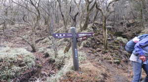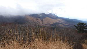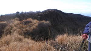 | 12/19(金) 曇りのち晴れ P(07:50)→大浪池園地休憩所(08:27)→3.0q分岐(09:09)→韓国岳避難小屋(09:14)→肩分岐(10:08)→韓国岳(10:10〜10:12、1,700.1m)→韓国岳避難小屋(10:58〜11:09)→大浪池(12:16)→P(12:42) |