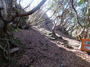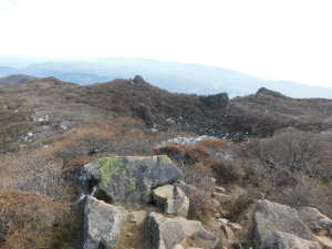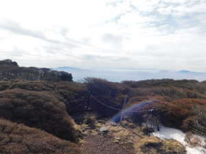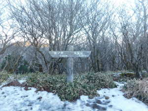 01/18(日) 大船山 P(07:17)→ゲート(07:20)→ガラン台(07:52)→林道分岐(07:54)→分岐@(08:07)→池窪分岐A(08:53)→分岐B(09:02)→鳥居ヶ窪(09:03)→肩広場(10:24)→大船山(10:28、1,786.1m)→御池(10:40〜10:55、1,747m)→肩広場(11:08)→鳥居ヶ窪(12:10〜12:20、1,400m)→分岐B(12:22)→岡藩主中川家墓所(12:24)→池窪分岐A(12:31)→分岐@(13:00)→林道分岐(13:10〜13:20)→ゲート(13:49)→P(13:51)