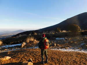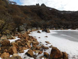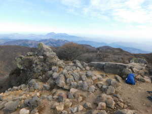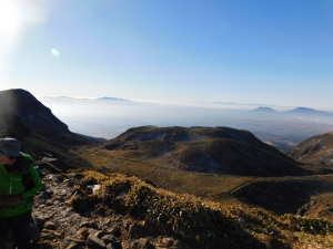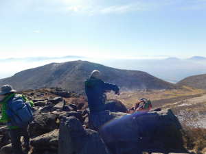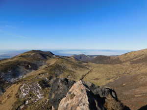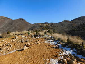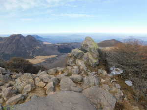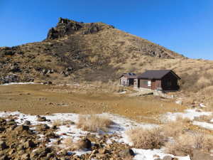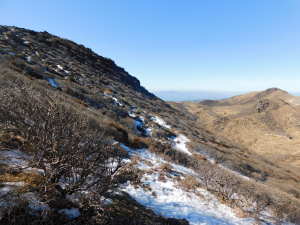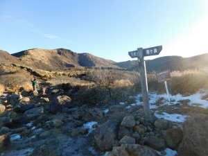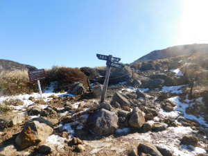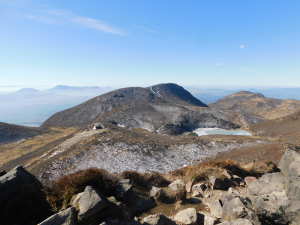 01/16(金) 星生山、天狗ヶ城、中岳、稲星山、久住山 P(07:03)→肩(07:16)→0.7q(07:28)→1.0q(07:46)→休憩地(08:10)→扇ヶ鼻分岐(08:31)→星生山(09:07、1,762m)→肩ピーク(09:46、1,721.9m)→避難小屋裏(10:07)→九重分レ(10:09)→中岳分岐(10:21)→御池(10:29)→天狗ヶ城(1,780m)→中岳(11:05〜11:25、1,791m)→稲星山(12:15、1,774m)→神明水分岐(12:29〜12:39)→久住山(13:01〜13:11、1,786.5m)→避難小屋(13:43)→扇ヶ鼻分岐(14:15)→休憩地(14:37)→肩(15:24)→P(15:34)