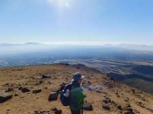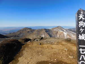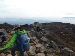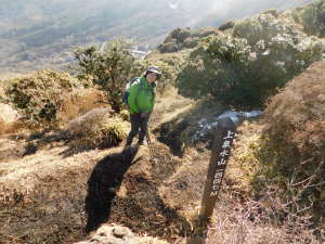 | P(07:03) 肩(07:16) 0.7q(07:28) 休憩地(08:10) 扇ヶ鼻分岐(08:31) 星生山(09:07、1,762m) 肩ピーク(09:46、1,721.9m) 避難小屋裏(10:07) 中岳分岐(10:21) 天狗ヶ城(1,780m) 中岳(11:05〜11:25、1,791m) 稲星山(12:15、1,774m) 神明水分岐(12:29〜12:39) 12:52 久住山(13:01〜13:11、1,786.5m) 13:25 避難小屋(13:43) 休憩地(14:37) 肩(15:24) P(15:34) |
