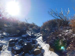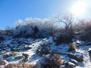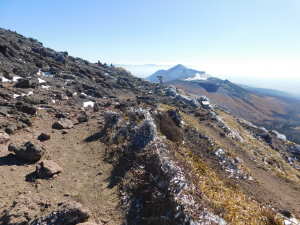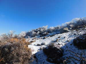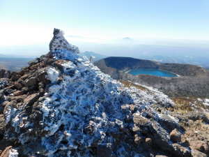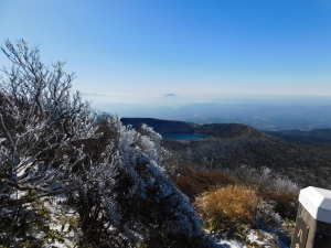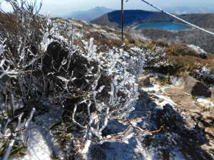 | 02/03(火) 晴れ P(09:39)→硫黄山火口展望所(10:16)→4合目、H=1450m(10:28)→5合目、H=1520m(10:40〜10:45)→7合目、H=1600m(11:00)→8合目、H=1640m(11:08)→9合目、H=1670m(11:14)→韓国岳(11:21〜11:45、1,700.1m)→6合目、H=1570m(12:07)→5合目、韓国岳登山道休憩所(12:12)→3合目、H=1410m(12:26)→硫黄山火口展望所(12:34)→登山道入口(12:59)→P(13:09) |