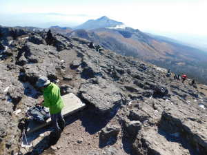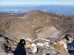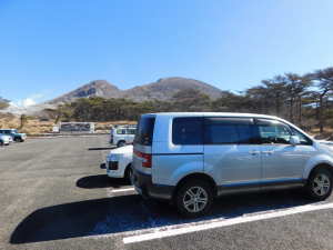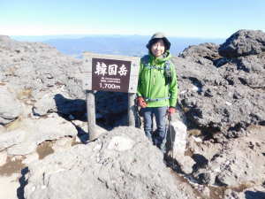 02/() P(09:39)→硫黄山火口展望所(10:16)→4合目、H=1450m(10:28)→5合目、H=1520m(10:40〜10:45)→7合目、H=1600m(11:00)→8合目、H=1640m(11:08)→9合目、H=1670m(11:14)→韓国岳(11:21〜11:45、1,700.1m)→6合目、H=1570m(12:07)→5合目、韓国岳登山道休憩所(12:12)→3合目、H=1410m(12:26)→硫黄山火口展望所(12:34)→登山道入口(12:59)→P(13:09)